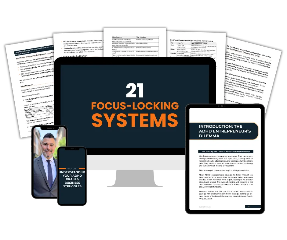 I spent over five years researching and testing these Focus-Locking Systems, working directly with hundreds of ADHD entrepreneurs to refine strategies that actually stick.